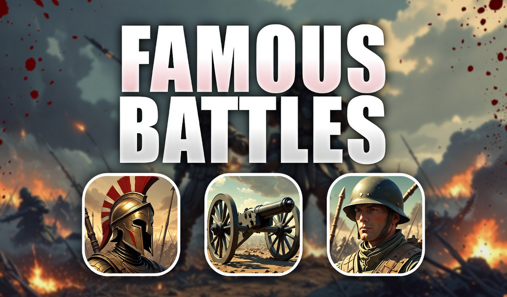 In Battles & Tactical History, you are thrown right into the heart of humanity's greatest conflicts. From the clang of Roman swords to the roar of Napoleonic cannons and modern armored strategies, your mission is to identify the crucial battles that redefined the borders of the world.